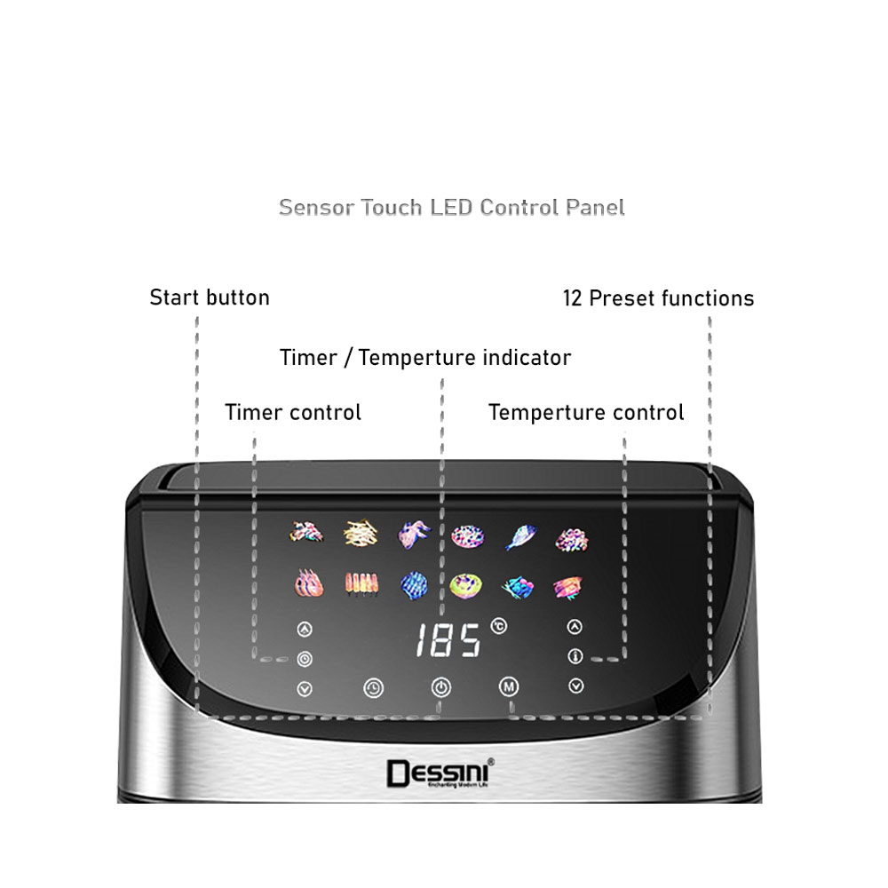 + موارد بیشترسرخ کن بدون روغن دیجیتال دسینی مدل 810DD با توان 2000 وات و ظرفیت 12.8 لیتری یکی از جدیدترین سرخ کن های بدون روغن شرکت دسینی میباشد و جز سرخکن های بزرگ با ظرفیت بالا است که برای خانوار با نفرات بیشتر یا مهمانی ها مناسب است. قابلیت تنظیم دما از80 الی 200 درجه سانتی گراد و تنظیم زمان تا 60 دقیقه را داراست.این دستگاه قابلیت سرخ کردن انواع مواد غذایی را بدون روغن دارد و با آن می توانید انواع غذاهای خوشمزه مانند مرغ سوخاری،سیب زمینی،استیک،جوجه سرخ شده، میگو،پیتزا ،م …پخته و میل نمایید.برای برخی ذایقه ها اسپری کمی روغن بر روی مواد اماده پخت طعم و مزه دلخواه این دسته از مصرف کنندگان را نیز تامین می نماید.